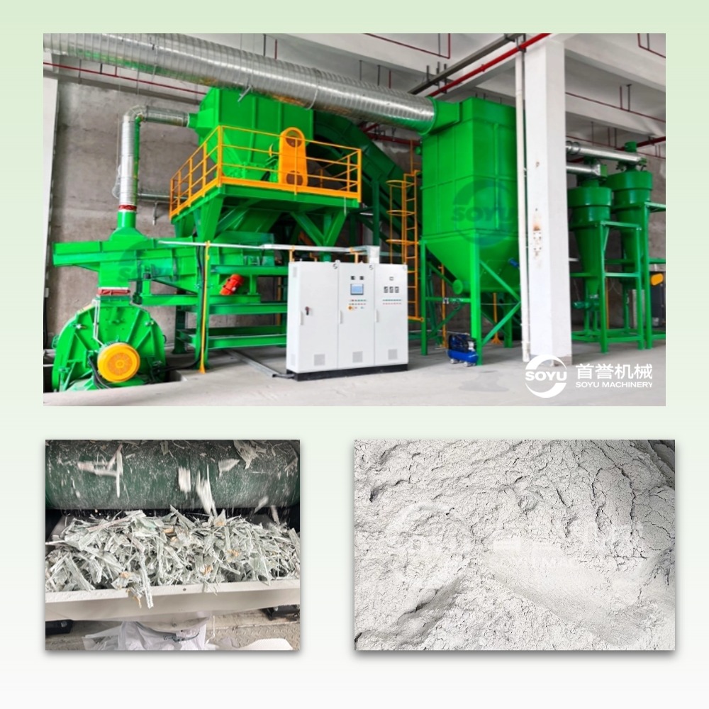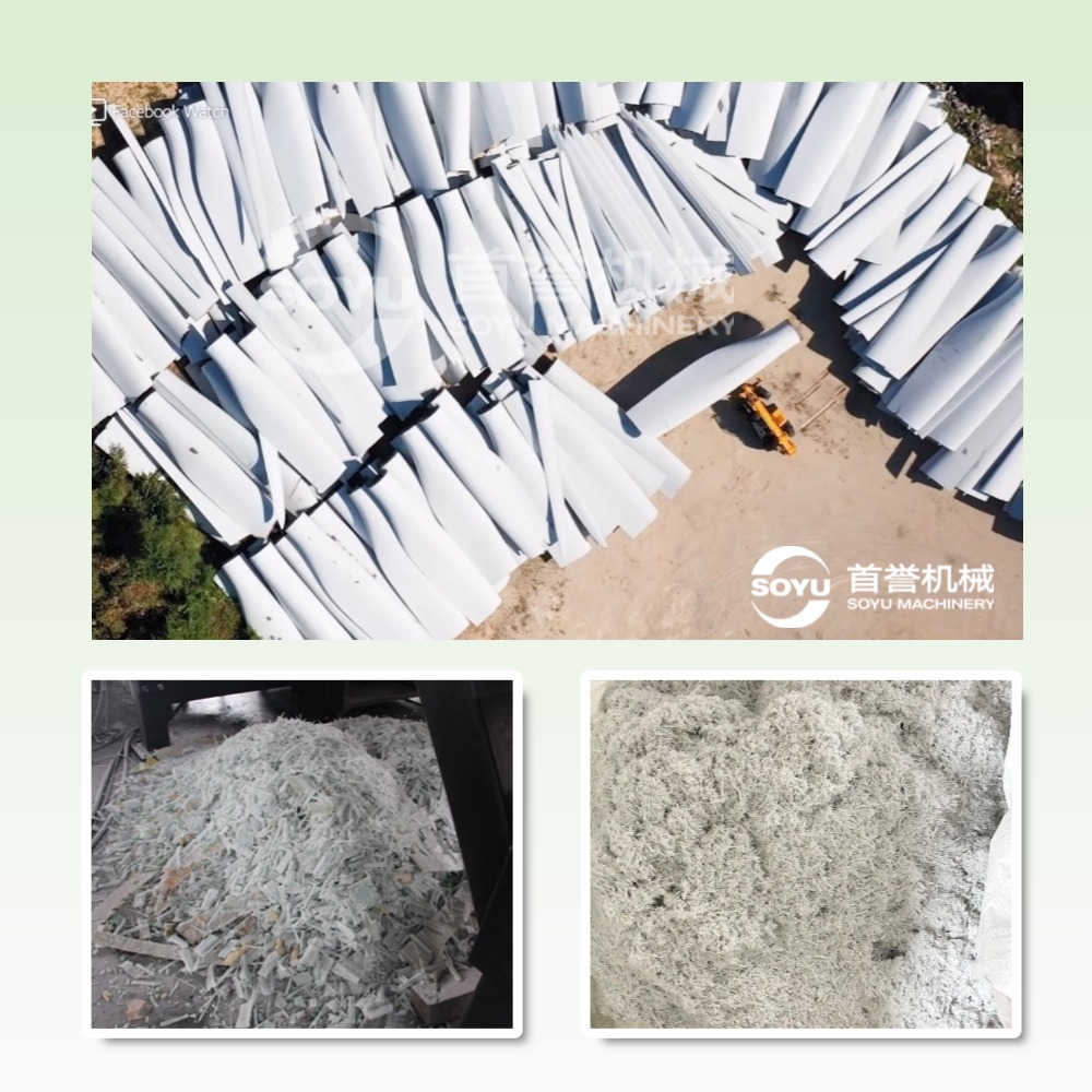 三、技術(shù)突破:智能化與精細(xì)化并行 1. 設(shè)備升級(jí) -首譽(yù)機(jī)械研發(fā)的退役風(fēng)電葉片玻璃鋼制品資源化處置系統(tǒng)等新型裝備,通過(guò)增加破碎維度,將出料粒度控制在 200 內(nèi),滿(mǎn)足高端復(fù)合材料再生需求。
